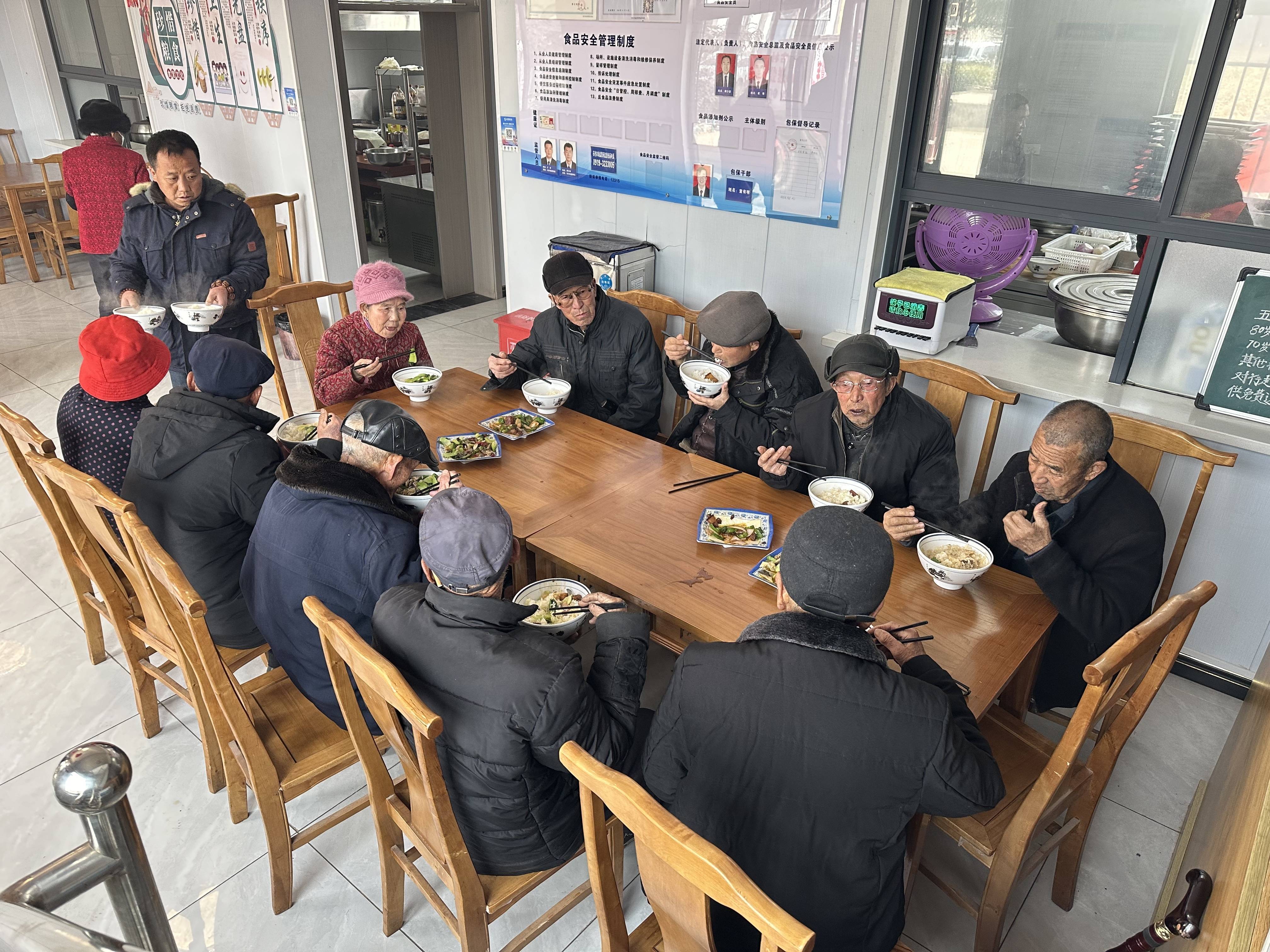 西古村德慈长者食堂内,老人们正在用餐。新华社记者 蔺娟 摄当“爱心餐车”行驶在乡间小道上的时候,德慈长者食堂的餐桌前已围坐了十余位老人,午后暖阳透过玻璃窗,映照着他们的笑脸。一碗碗热饭,不仅温暖了老人的胃,更深深触动了他们的心弦。