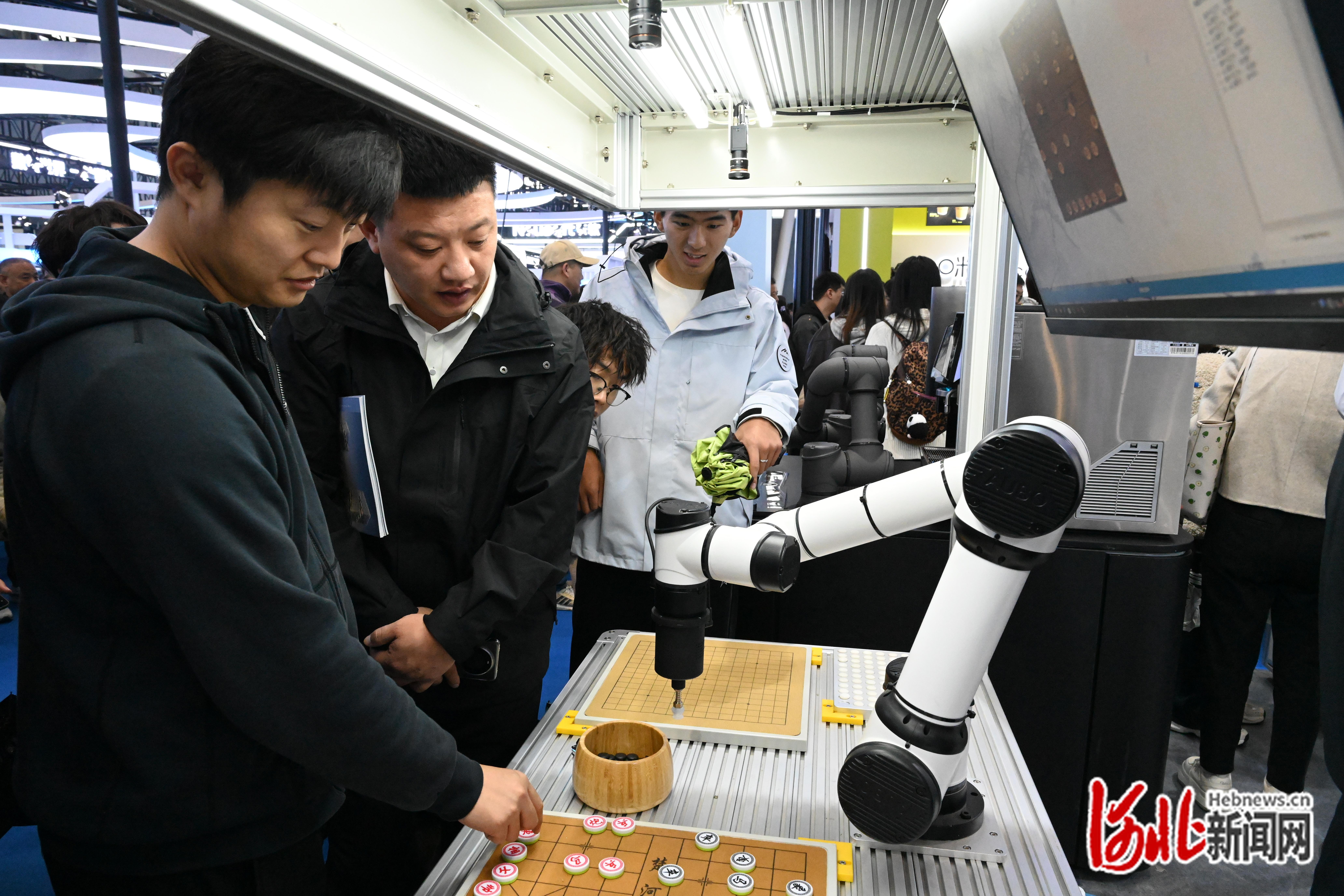 10月17日,观众和下棋机器人对弈。河北日报记者 史晟全摄