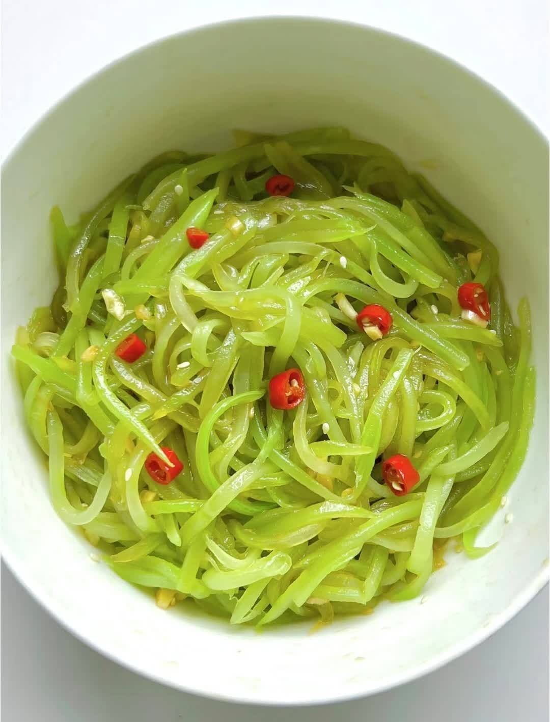 凉拌莴笋是一道清爽可口的开胃菜。将莴笋去皮洗净,切成细丝,放入碗中,加入适量的盐腌制一会儿,这样可以去除莴笋的涩味。腌制好后,用清水冲洗干净,挤干水分。接着加入蒜末、生抽、醋、白糖、香油等调料,搅拌均匀即可。凉拌莴笋口感脆嫩,酸辣可口,是一道非常适合春天食用的下饭菜。