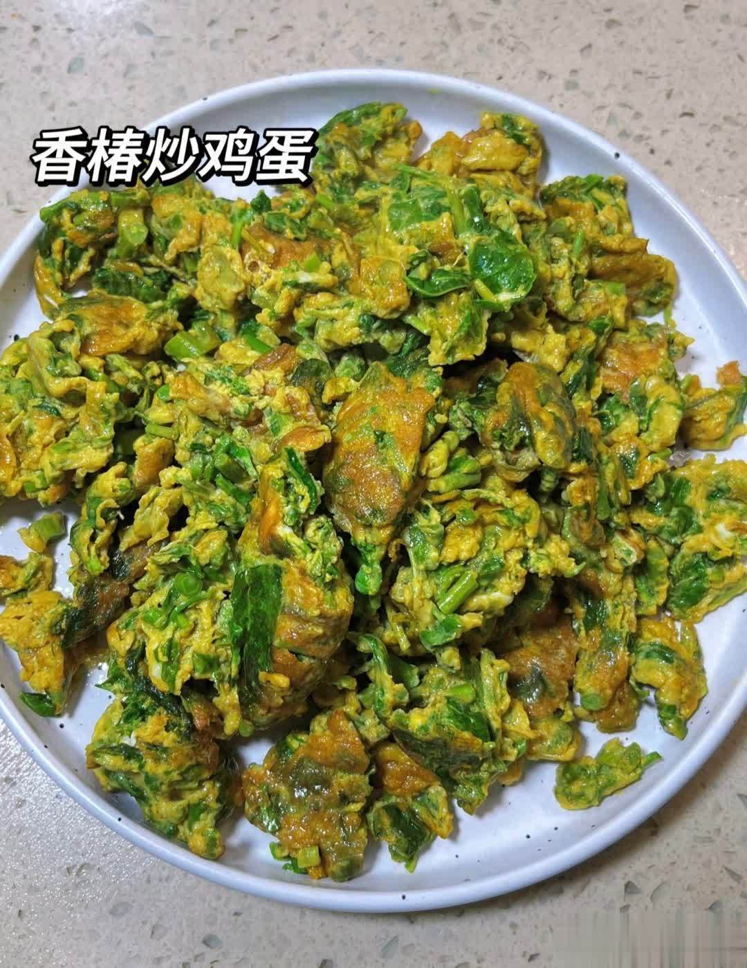 焯好后的香椿切成小段,与打散的鸡蛋液充分混合,加入适量的盐调味。锅中热油,倒入香椿鸡蛋液,待蛋液凝固,用铲子快速翻炒,让香椿和鸡蛋充分融合。炒好的香椿炒鸡蛋色泽金黄,香气扑鼻,鸡蛋的嫩滑与香椿的醇厚相得益彰,老人孩子都爱吃。