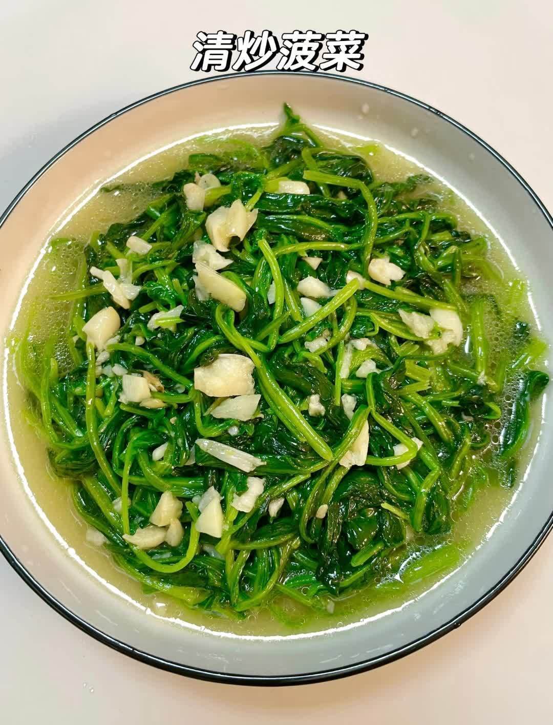 清炒菠菜色泽翠绿,口感清爽,保留了菠菜的原汁原味,是一道健康又下饭的佳肴。还可以用菠菜做菠菜蛋花汤,将菠菜焯水后切碎,锅中加水烧开,放入菠菜碎,淋入鸡蛋液,煮开后加入盐、香油等调味,一碗营养丰富的菠菜蛋花汤就做好了,老人孩子喝上一碗,暖身又暖心。