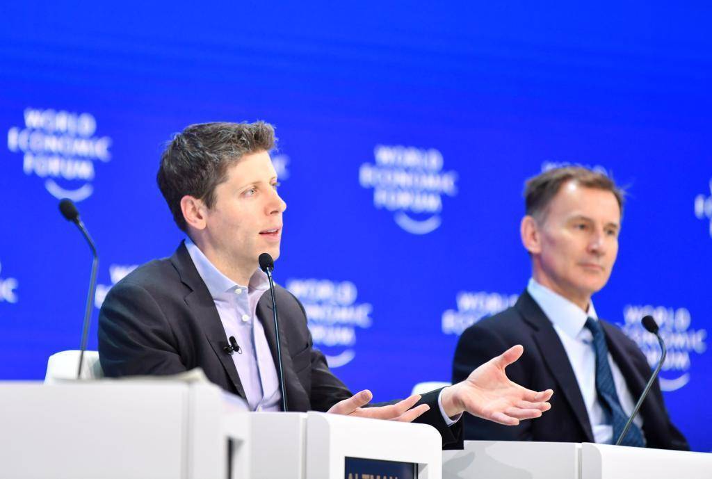 2024年1月19日,OpenAI首席执行官萨姆·奥尔特曼在瑞士达沃斯举行的世界经济论坛发表演讲。新华社记者连漪摄